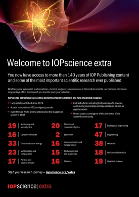 세계적으로 물리학계를 주도하는 IOP Corporate 학회의 저널을 출판하고 있으며, 50,000여 명의 물리학 관련 교수 및 연구원들이 회원으로 가입되어 있고, 물리학, 의학, 응용물리, 핵물리학, 광학, 원자력 물리분야의 최신 연구 및 동향 정보를 제공하고 있습니다. IOP science 플랫폼에서 정확하고 빠른 검색을 통하여 이용자들이 검색시간을 절약하고 원하는 정보를 바로 찾을 수 있도록 서비스를 제공하고 있습니다.